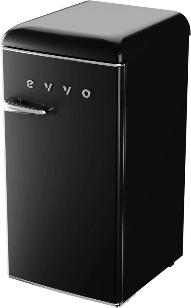 EVVO Nevera Pequeña Retro, 90 litros de Capacidad, Diseño Vintage, Bajo Consumo, Silenciosa, Control de Temperatura, Organizador de Espacios, Frigorífico Mini F25 Retro Color Negro [Clase de eficiencia energética F]